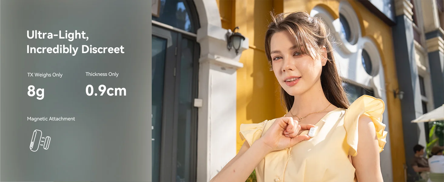 مايكروفون لاسلكي صغير، خفيف، ويعطيك صوت بجودة عالية.